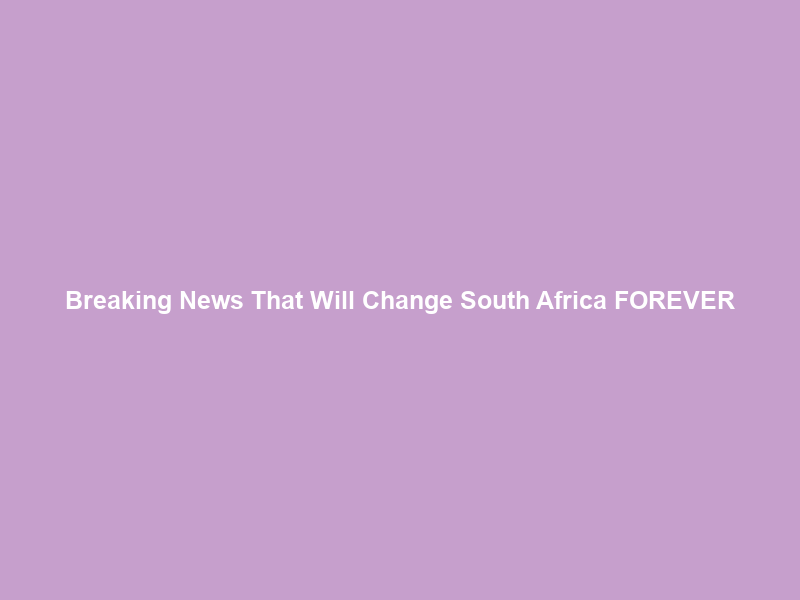 Breaking News That Will Change South Africa FOREVER