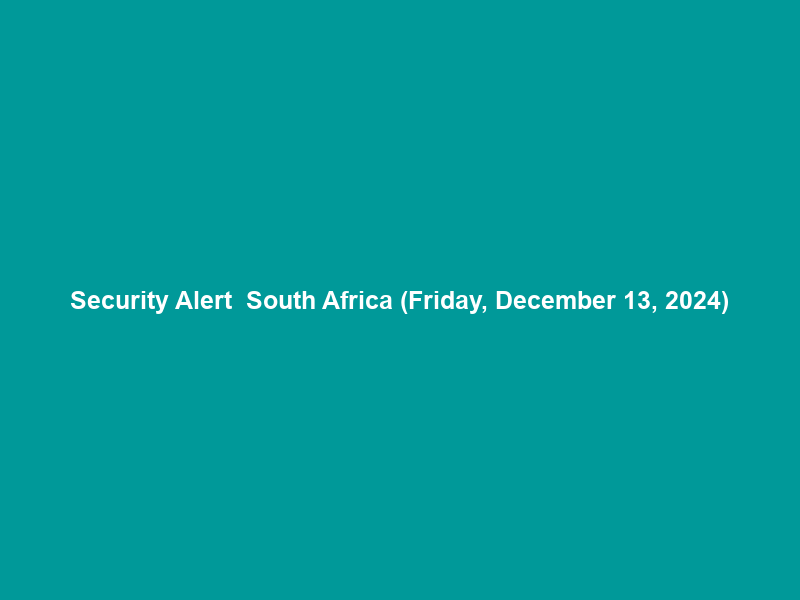 The post Security Alert – South Africa (Friday, December 13, 2024) appeared first on U.S. Embassy & Consulates in South Africa.
