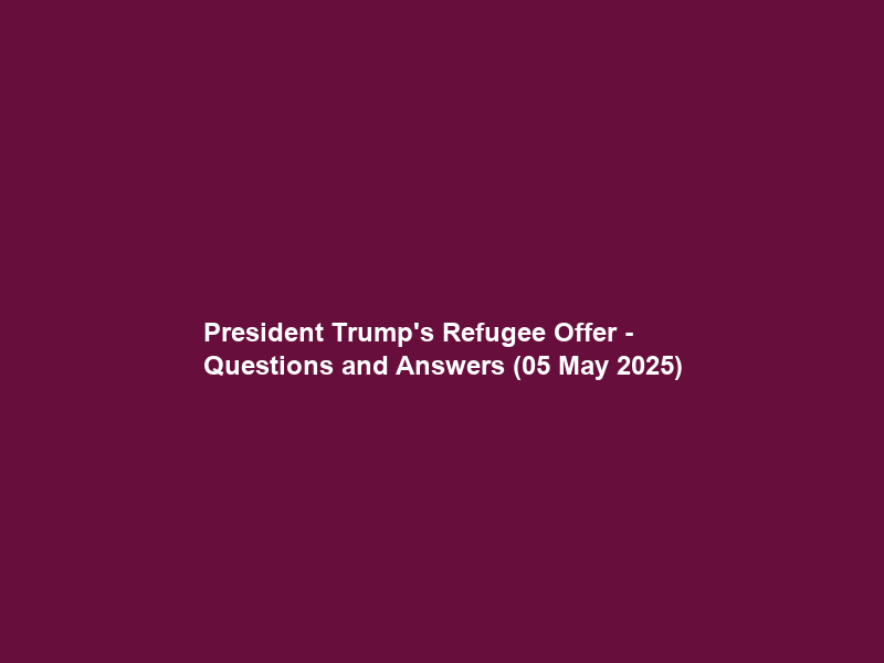 President Trump’s Refugee Offer – Questions and Answers (05 May 2025)