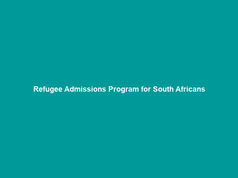The post Refugee Admissions Program for South Africans appeared first on U.S. Embassy & Consulates in South Africa.