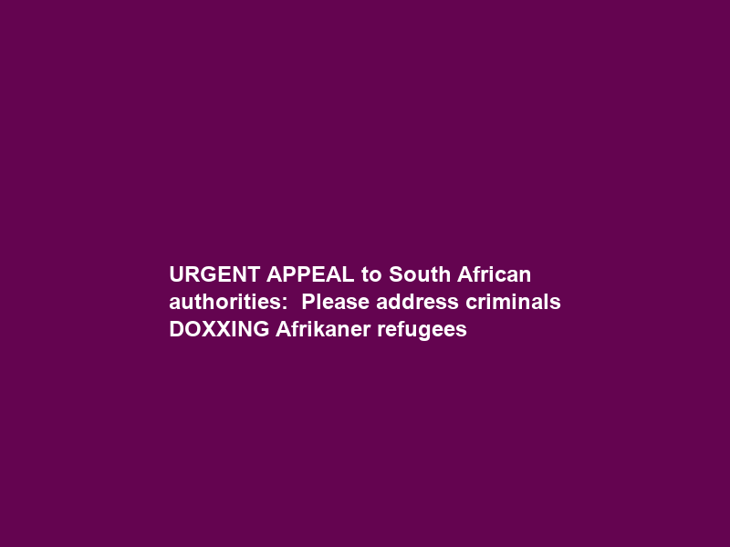 URGENT APPEAL to South African authorities: Please address criminals DOXXING Afrikaner refugees
