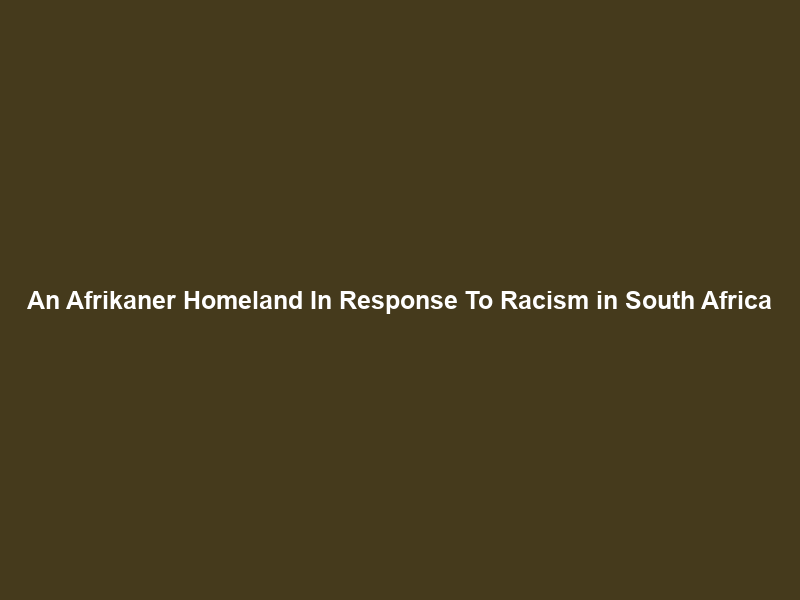 An Afrikaner Homeland In Response To Racism in South Africa