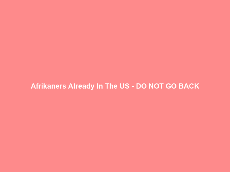 Afrikaners Already In The US – DO NOT GO BACK