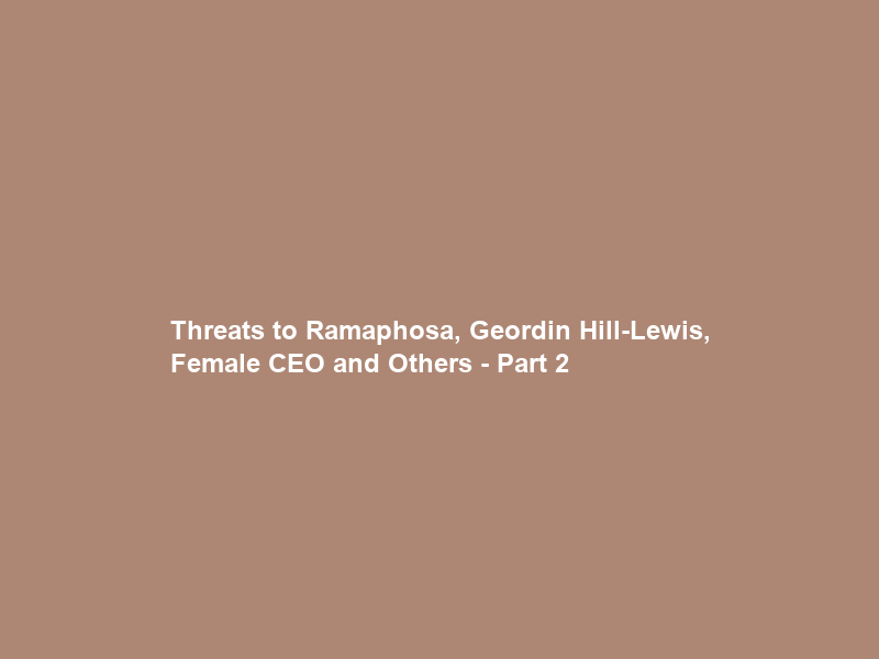Threats to Ramaphosa, Geordin Hill-Lewis, Female CEO and Others – Part 2