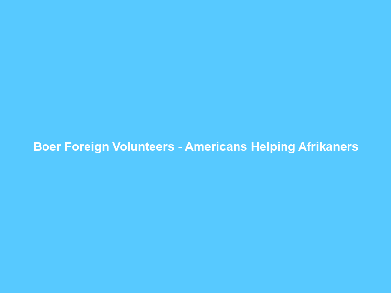 Boer Foreign Volunteers – Americans Helping Afrikaners