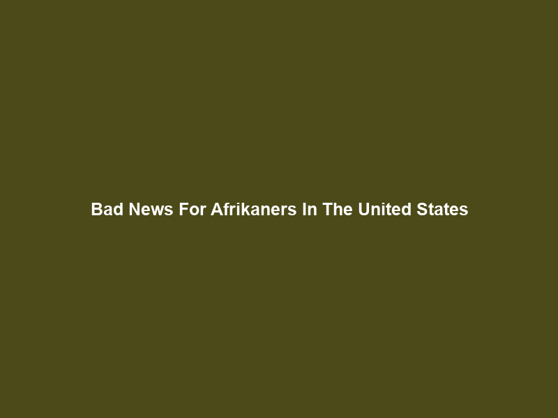 Bad News For Afrikaners In The United States