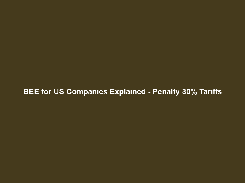 BEE for US Companies Explained – Penalty 30% Tariffs