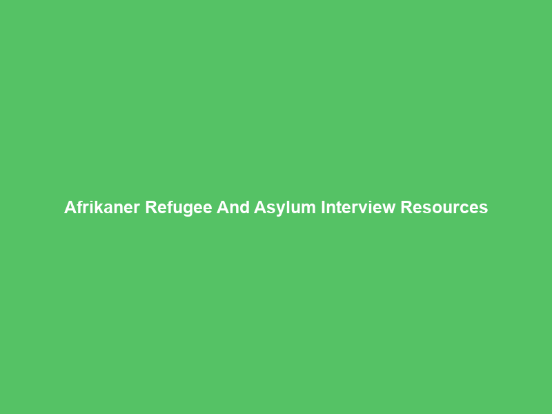 Afrikaner Refugee And Asylum Interview Resources