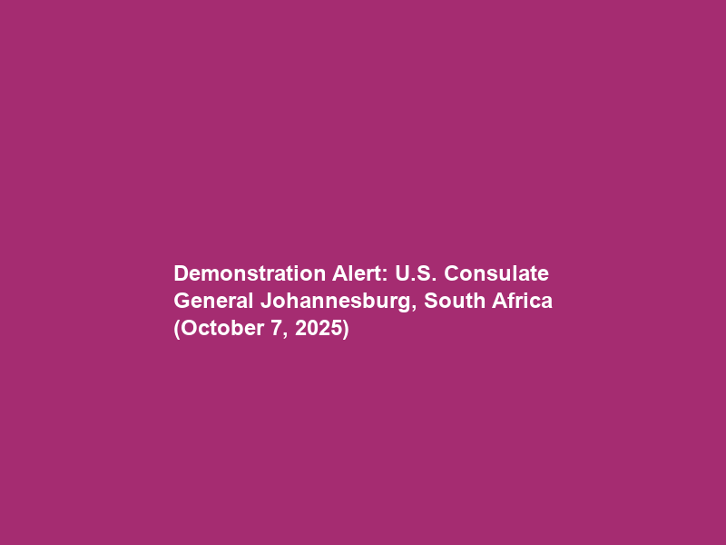 The post Demonstration Alert: U.S. Consulate General Johannesburg, South Africa (October 7, 2025) appeared first on U.S. Embassy & Consulates in South Africa.